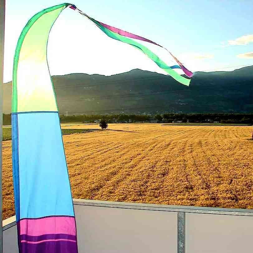 Balkon, Ausblick, Sonne, Berge, Fahne, Heimat