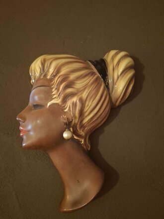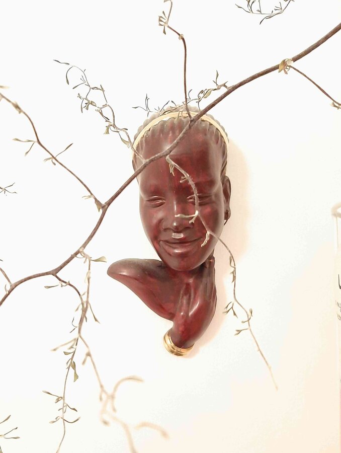 Das ist mein absolutes Lieblingsstück, weil es mich an meine Kindheit und meine Oma erinnert. Diese originale Wandmaske aus den 50igern hing schon immer hier im Wohnzimmer an der Wand und hat mich schon als Kind fasziniert.