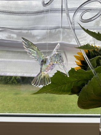 Außerdem habe ich noch den hübschen Glaskolibri, den ich mir in unser örtliches Haushaltswarengeschäft bestellt hatte, abgeholt.