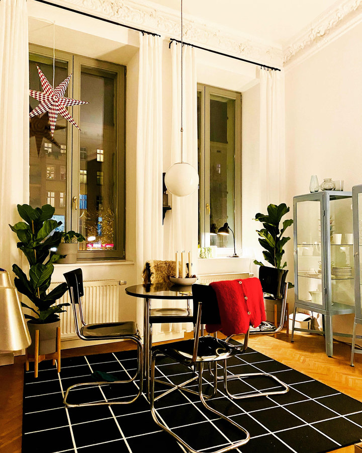 Wohnzimmer aktuell, Weihnachtsstern, Ikea Teppich, Ikea Fabrikör, Bauhausmöbel, Altbauwohnung