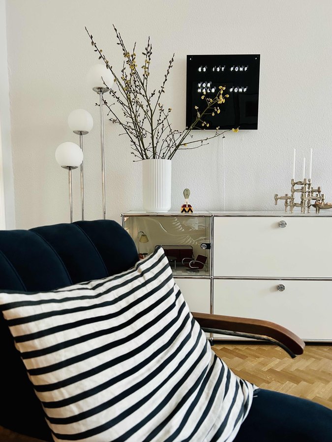 Wohnzimmer, USM Haller, Ikea Leuchte, Lyngby Vase, stoff nagel, Clocktwo, Bauhaus Miniatur, Bauhaus Thonet