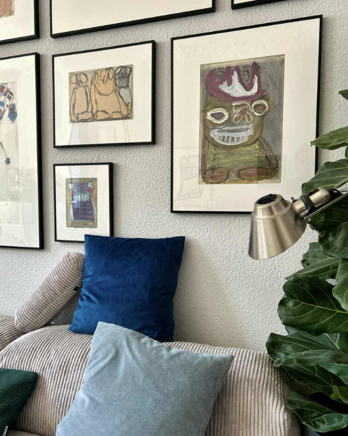 Der Bildergalerie im Wohnzimmer ganz nah. Im Vordergrund das Bild „Ich spiele den König“.