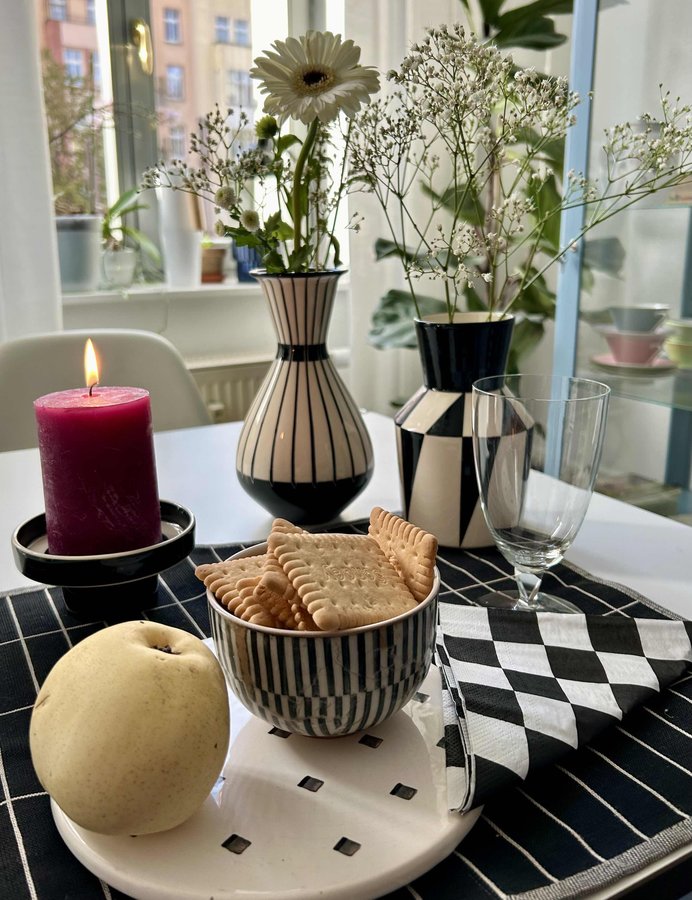 Wohnzimmer, Tischdeko, Marinekko, Hedwig Bollhagen, Vasenliebe, Wagenfeld Glas