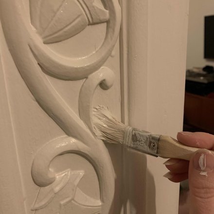 Ich nutze die Zeit und restauriere unsere Möbel. Wie diesen alten Schrank, den wir letztes Jahr vom Sperrmüll gerettet haben. Er erstrahlt nun in neuer Mattigkeit. Den Lack habe ich selbst gemacht.