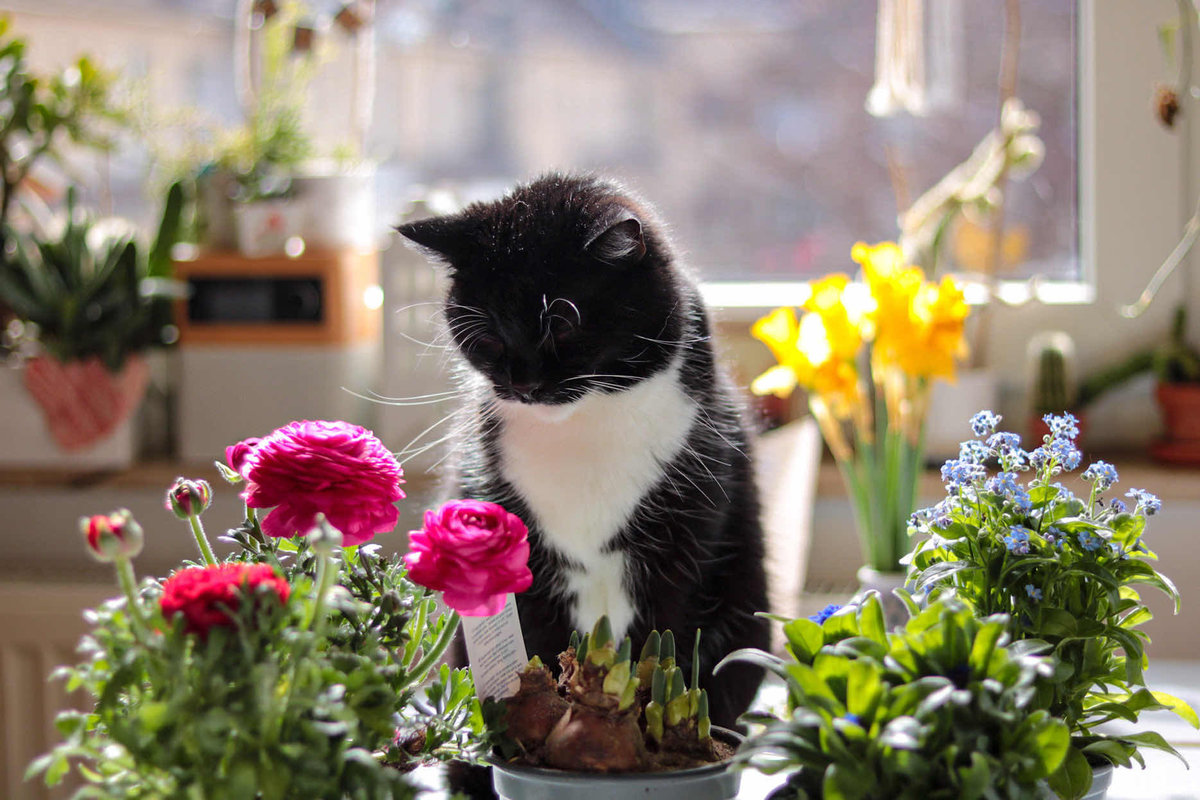 Katze, Ranunkel, Frühling, Ostern, Blumenzwiebeln, Vergissmeinnicht, Küche, Sonne, Sonnenschein, Balkon, Balkonien