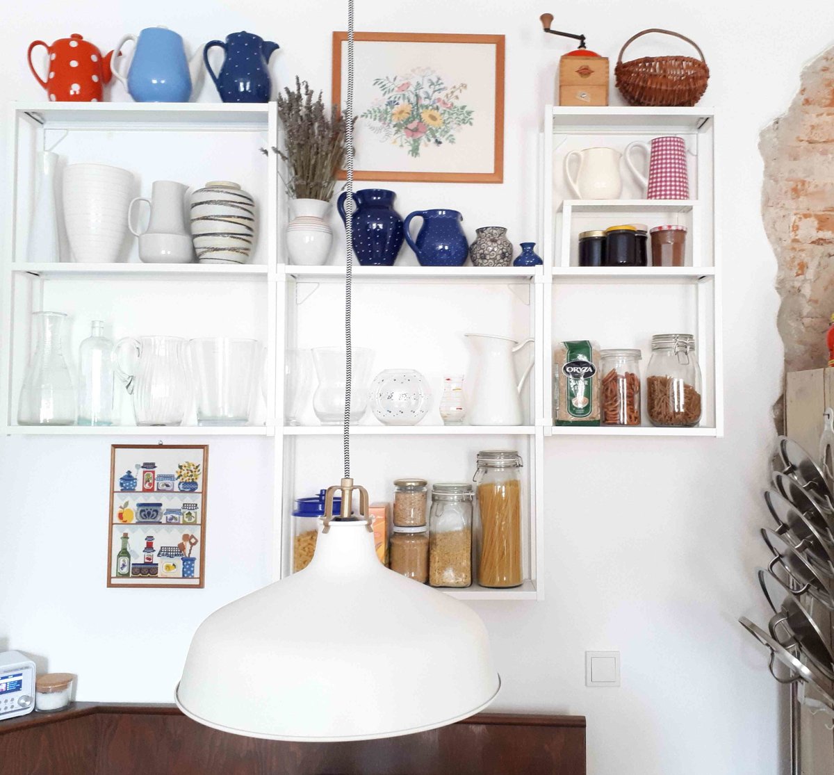 Küchenregal, Stürtzenhalter, Deko, Stickbilder, Bürgelkeramik, Vasensammlung