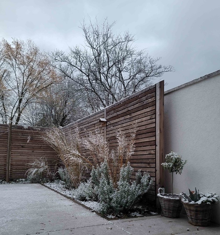 Schnee, Garten, Lärche, Winter, Korb, Olive, Vogelhaus, Feinstein