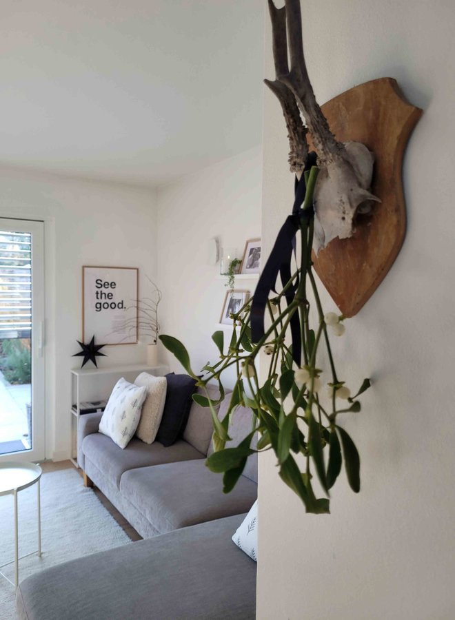 Adventsdeko, Hirsch, Geweih, Couch, Wohnzimmer, Mistelzweig