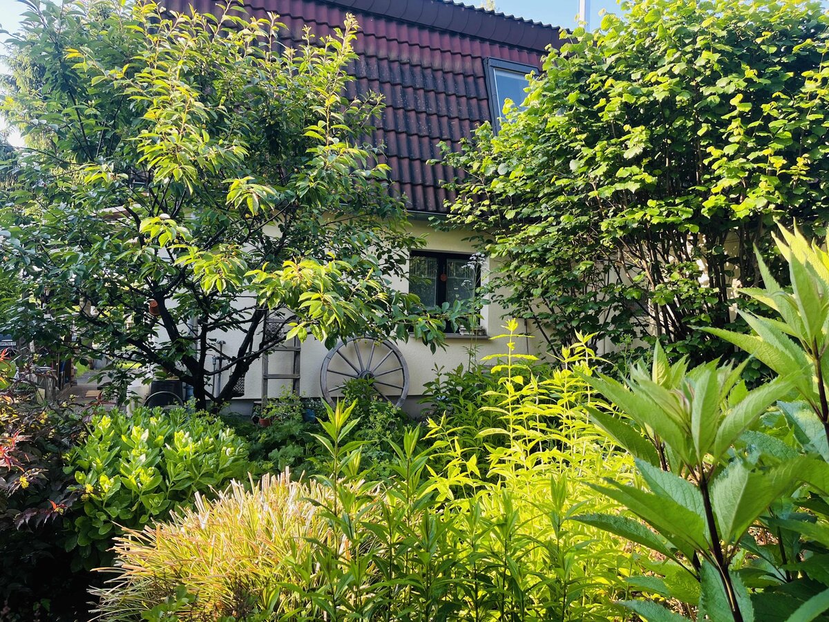 Den Blick durchs Staudenbeet auf unser Haus mag ich immer noch so gern…