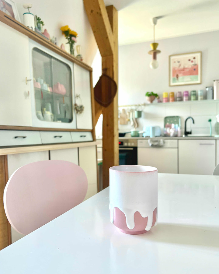 Interior, Interiordesign, Küche, Küchenbuffet, Keramik, Kaffeepause, Kaffee, Rosa, Küchenaccessoires