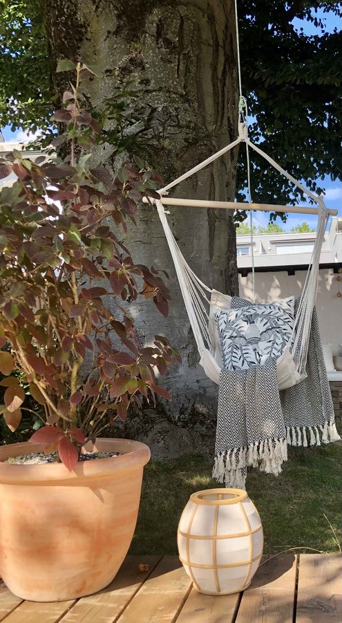 Einer meiner Lieblingsplätze zurzeit. Mit einer kuschligen Decke im Hängestuhl unter der uralten, knorrigen Buche einen Krimi lesen und dankbar ein paar Sonnenstrahlen einfangen.