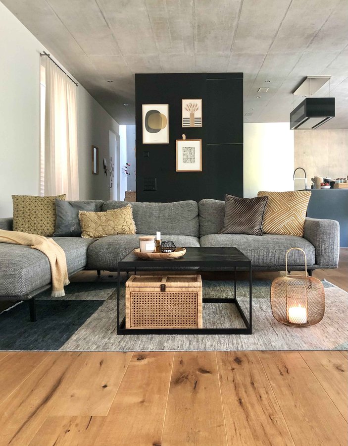Unser Sofa, das als Raumteiler zwischen Wohn- und Esszimmer/Küche dient. Darum achteten wir auf eine hübsche Rückseite. Wichtig war uns ausserdem, dass es genug Platz für uns vier plus die zwei Katzen bietet. Und wegen ihnen musste es auch ein Bezug sein, der Kratzspuren wegstecken kann. Klappt erstaunlich gut!