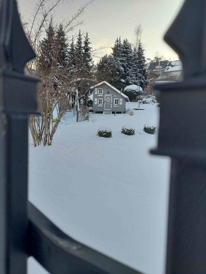 Unser Spielhaus ist eingeschneit, sieht aber auch ganz romantisch aus. Euch einen schönen Abend 😘