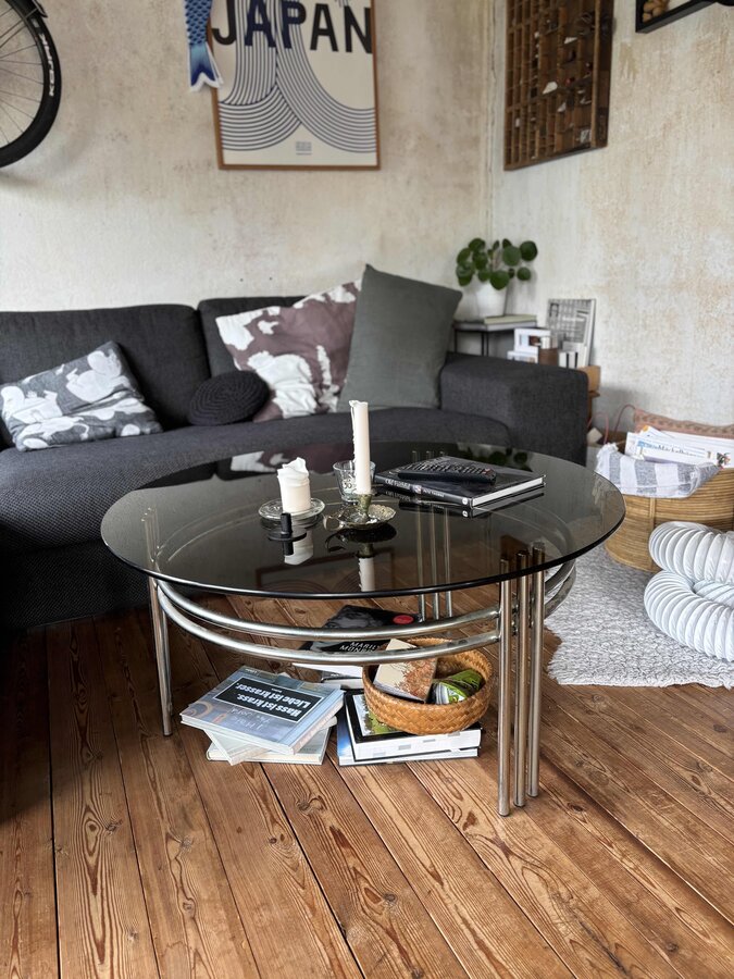 Kleinanzeigen, Fundstück, Space, Chrom, Rauchglas, Couchtisch