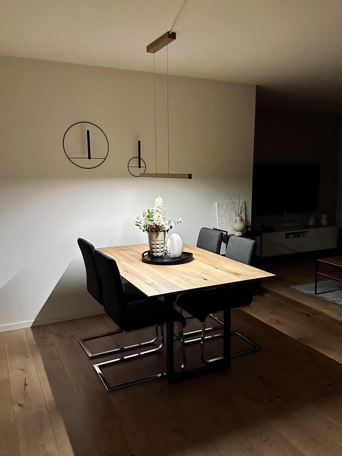 Esstisch, Esszimmer, Ess und Wohnbereich, Schweizer Kante, Eichentisch, Pendelleuchte