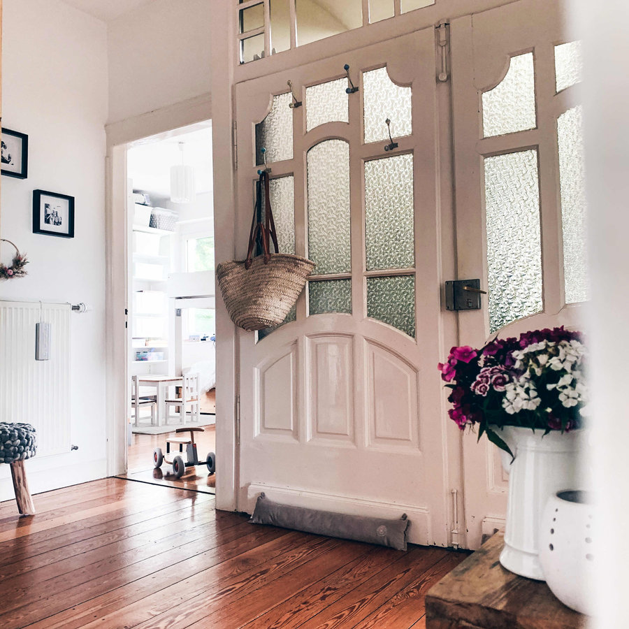 Eingangsbereich, Scandi, Dielenboden, Flügeltür