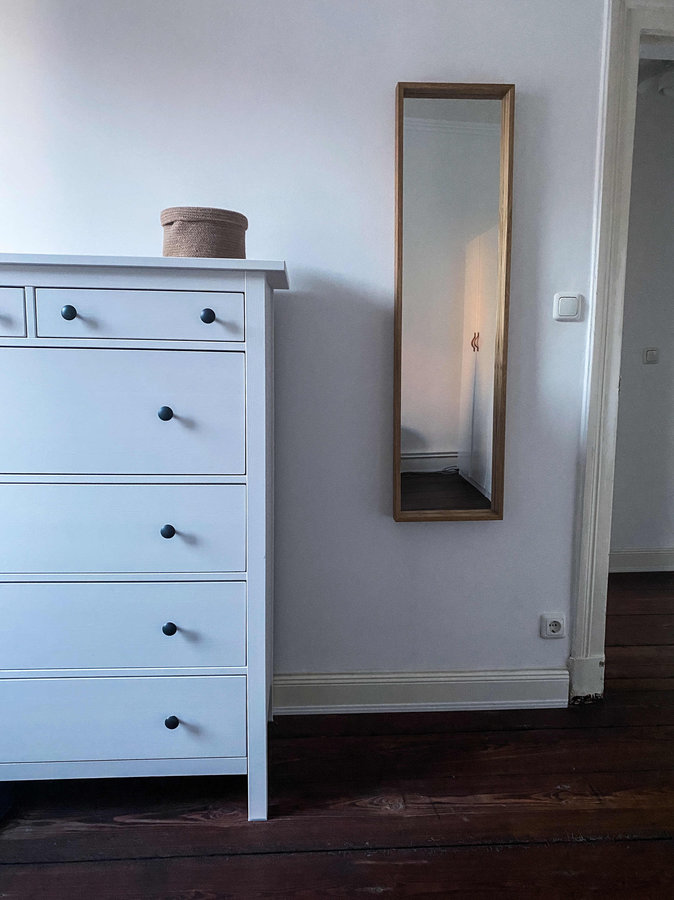 Kommode, Spiegel, Korb, HM Home, made, Ikea, dunkledielen, dunkler Boden