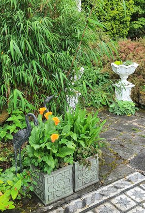 Gartentisch, Steinplatte, Terasse, Gartemimpressionen, Palmen
