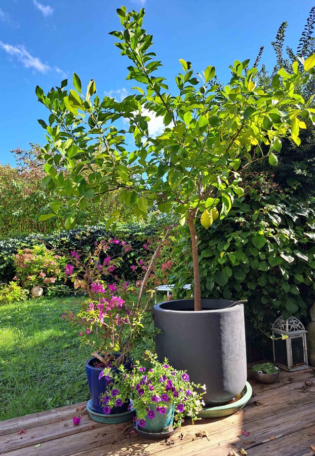Unser Zitronenbaum genießt noch die letzten herbstlichen Sonnenstrahlen auf der Terrasse, bevor er bald in sein Winterquartier umziehen wird ❤️