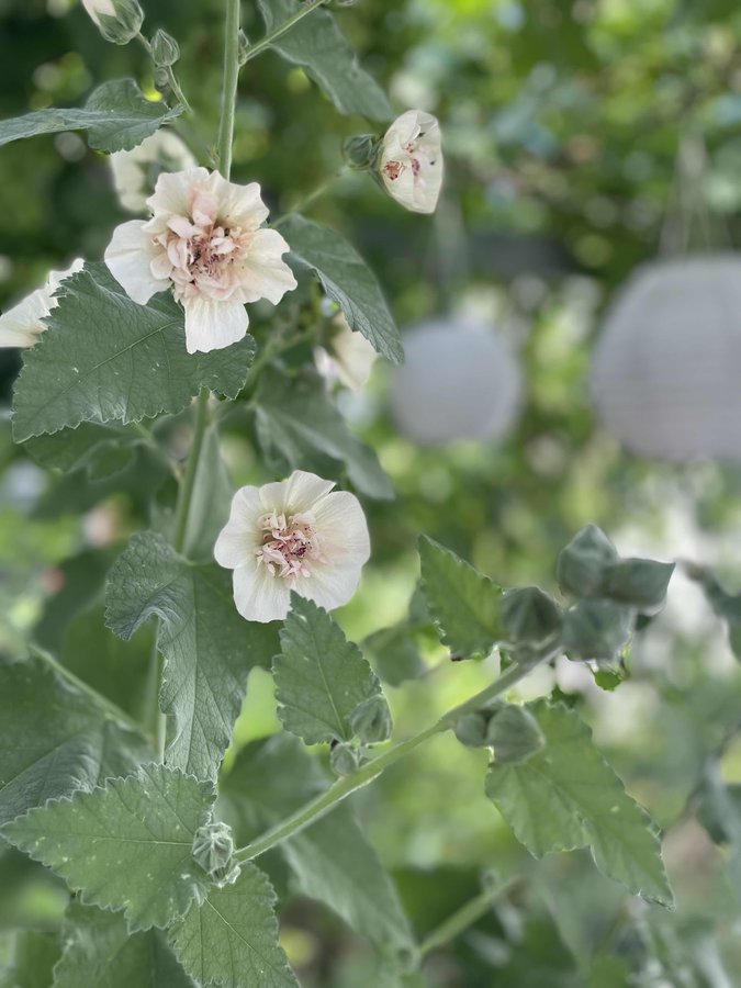 Diese Stockrose hab ich letztes Jahr zusammen mit 3 anderen gepflanzt. Der Standort unter der Weinlaube ist nicht optimal, da ab Juli zu schattig. Dennoch ist sie wiedergekommen und trägt üppig Blüten 🌸 Freu mich sehr darüber!
