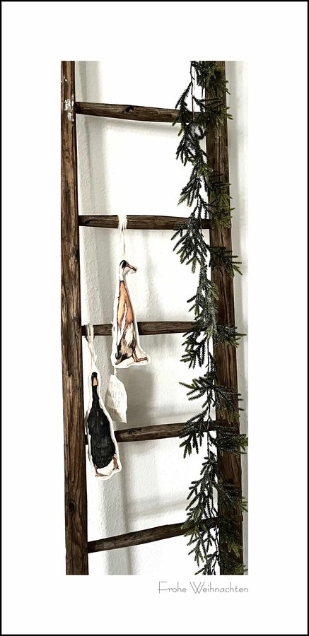 Karte,weihnachten,zeichnen,diy,Gänse,Leiter,upcycling,vintage,tanne,grün,dekoidee,inspo,Post,Wasserfarben,basteln,christmascard