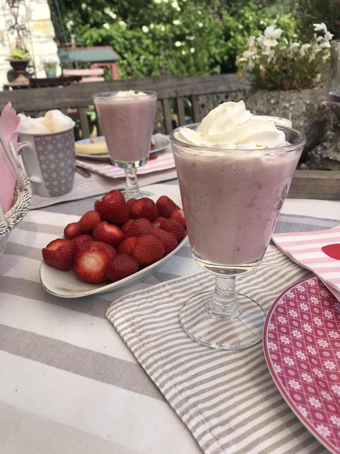 Erdbeeren, Frühstück, Terasse, Shake, Tisch