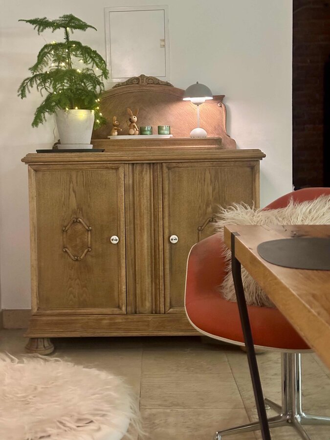 Neujahrsprojekt, Buffet, Anrichte, Antikes Schränkchen, Eames Armchair, janua, FlowerPot, VP9, Handarbeit