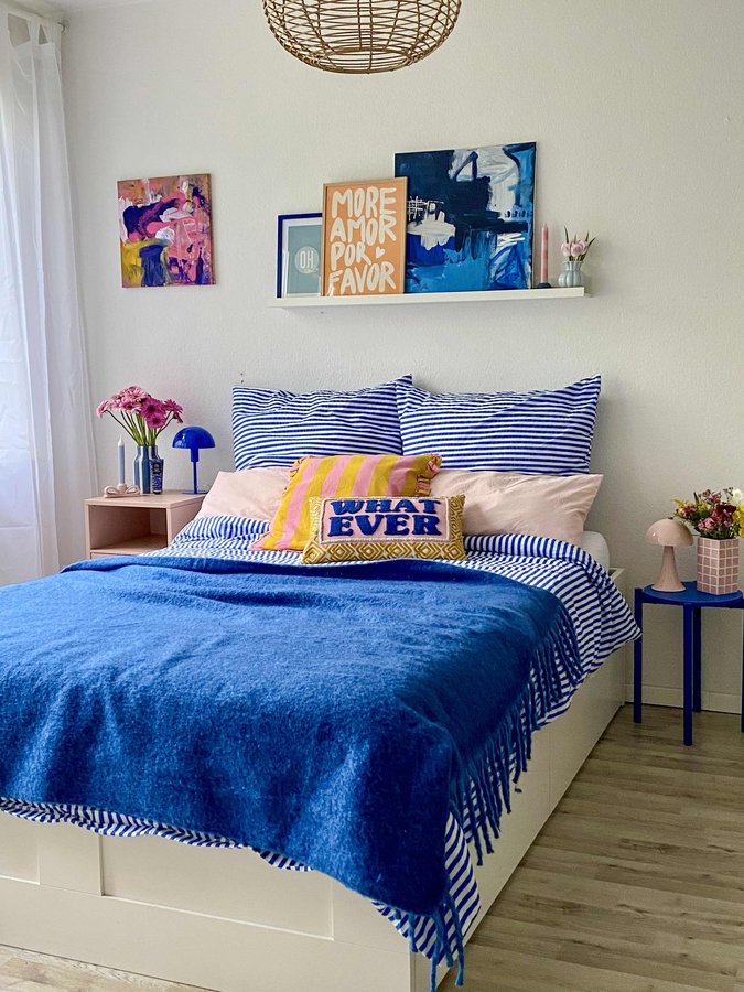 Blau, Ikea, Cozy, bedroom, Colorful, Dekoidee