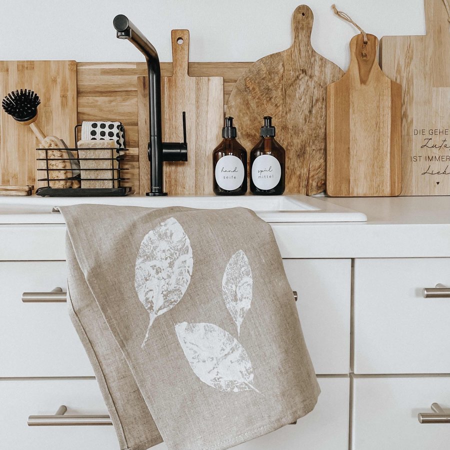 DIY, Stempel, Geschirrtuch, Deko, Küche, Leinen, Boho