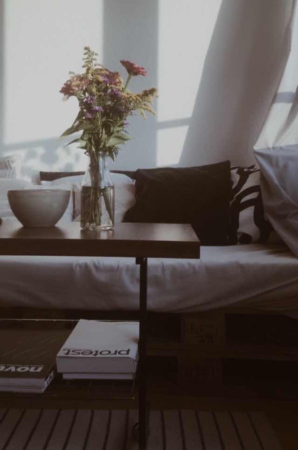 Wohnzimer, 60er, 60er Jahre, Paletten, Vase, Blumen, Blumenstrauß, Sofa
