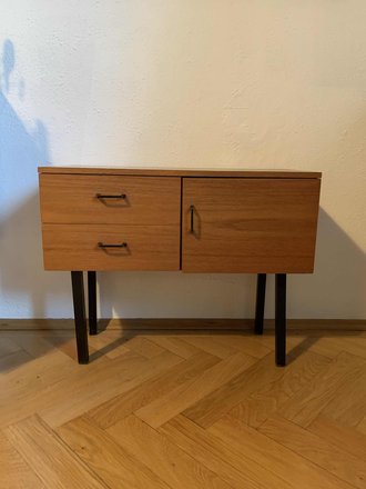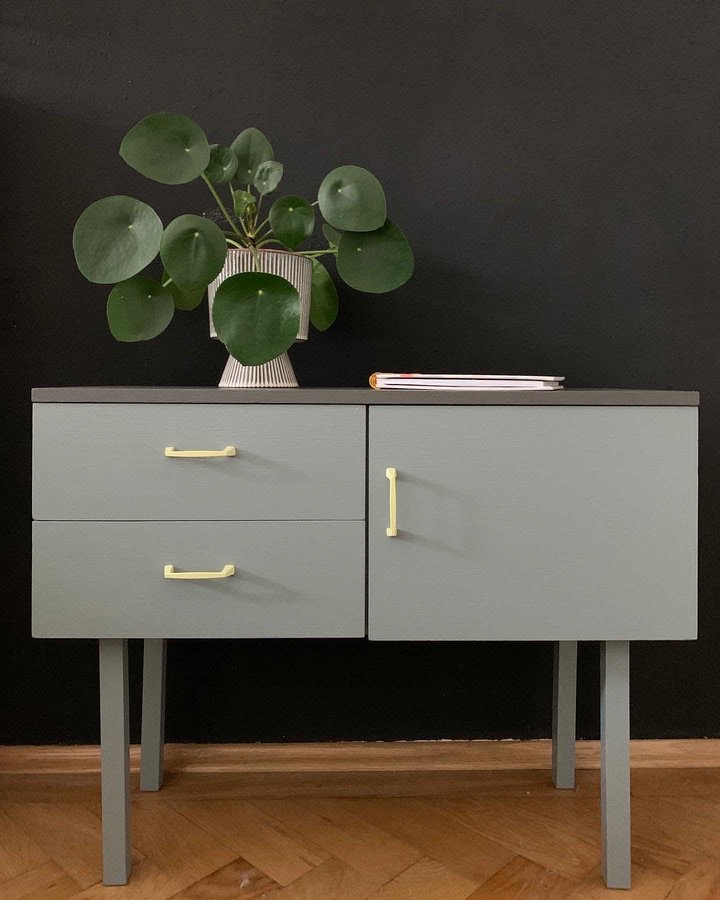 Mal wieder ein kleines upcycling Projekt. Hab der kleinen midcentury Konsole aus den 50/60er Jahren einen neuen Anstrich verpasst und auch die Griffe umlackiert