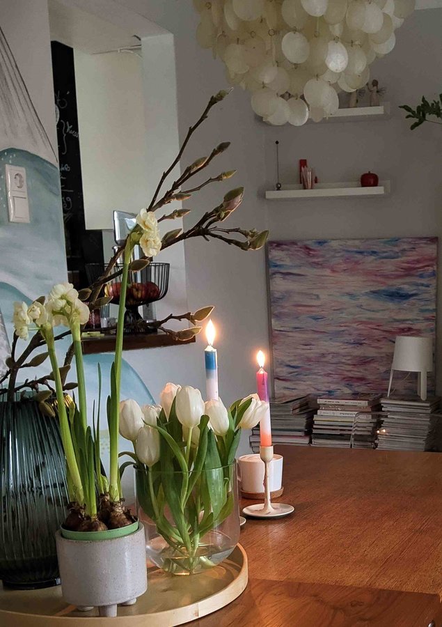 Frühling, Tulpen, Tisch, Esszimmer, Vase, Deko, K7nst, Kerzen, Happysunday, sunday mood