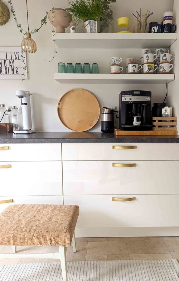 Küche, Kaffee, Kaffeebar, Einrichten, Hocker, Becher, Hängepflanze, Lampe, Kaffeemaschine