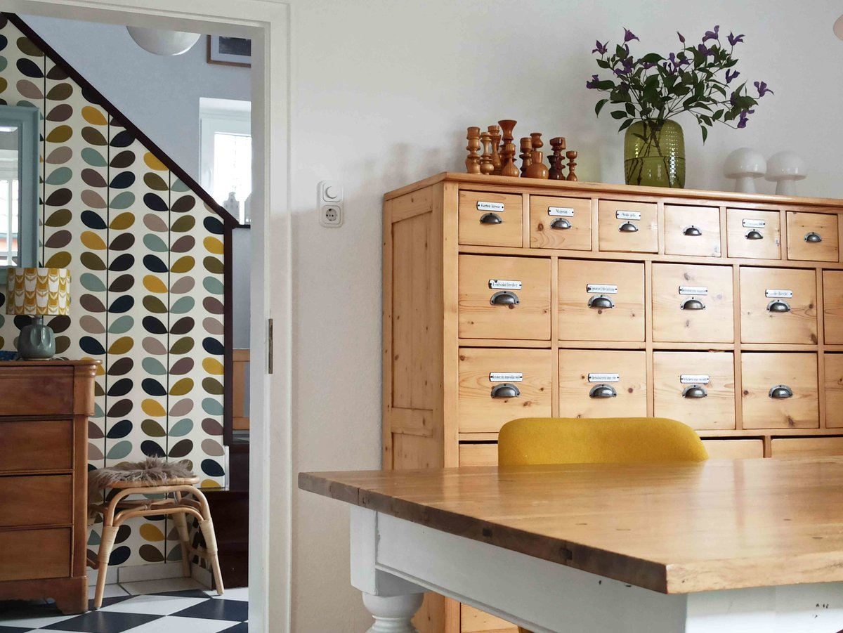 Esszimmer, Skandi, Farbenfroh, Stilmix, eclectic, Tapete, Orla Kiely, Kwantum
