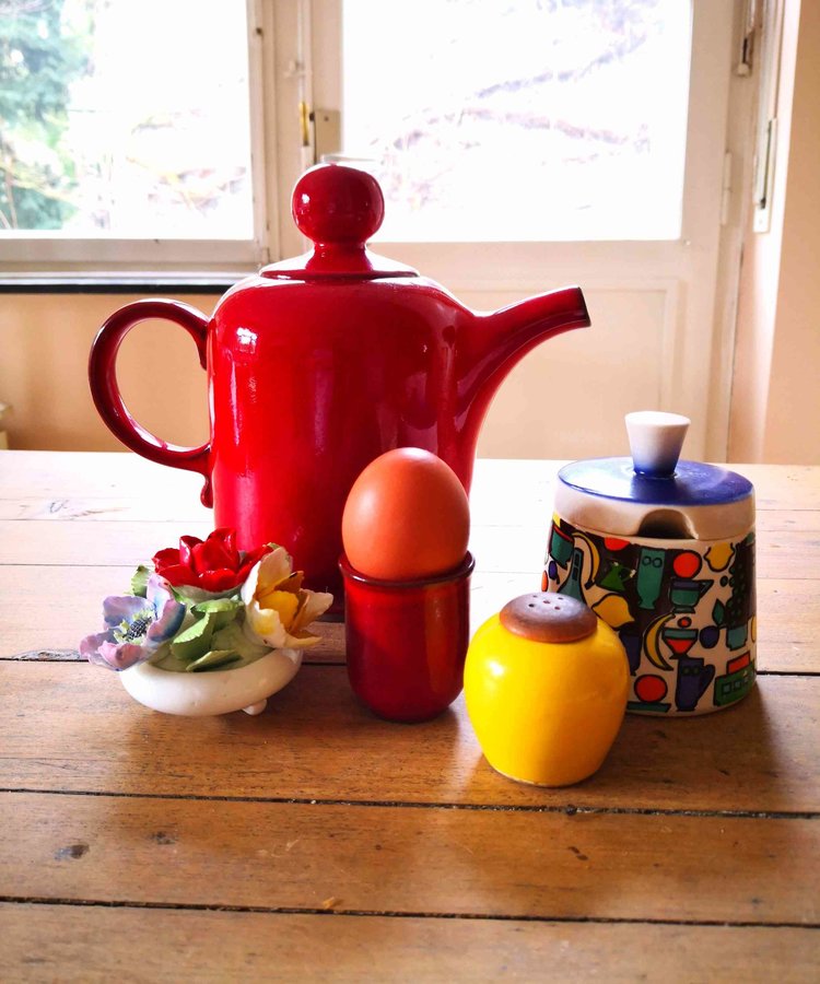 Keramik, Vintage, 60ties, Farbe, Blumen, Eierbecher, Ostern, Zuckerdose, Altbau, Holzdielen