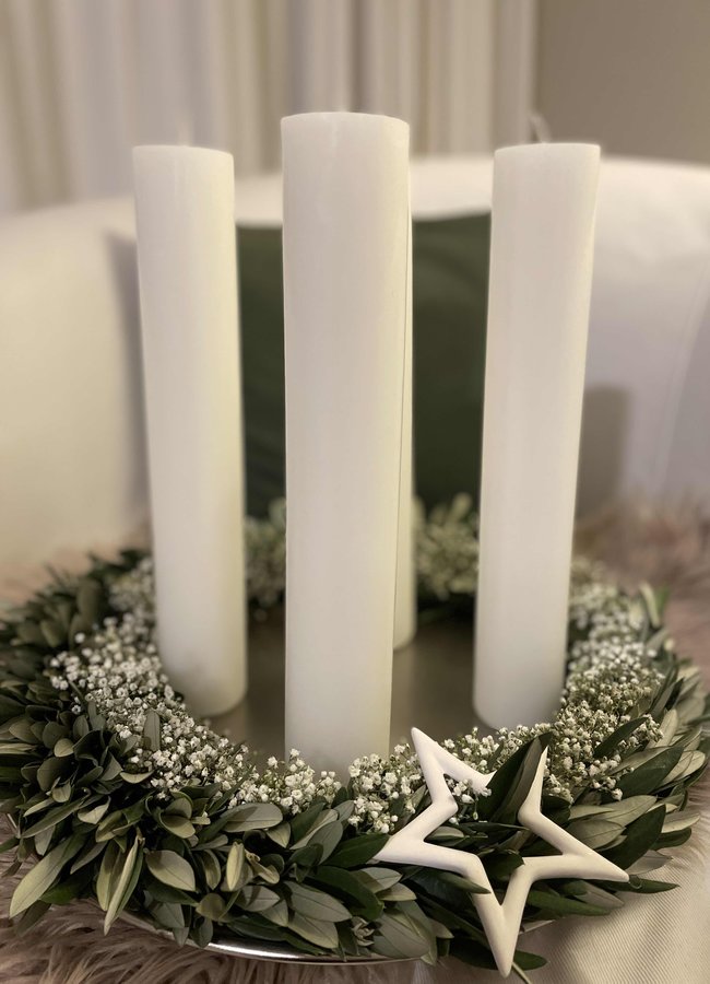 Olivenzweige, Schleierkraut, Bienenwachskerzen