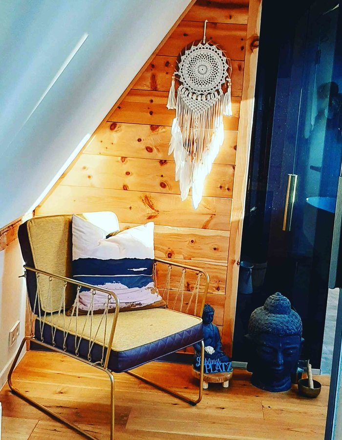 Badezimmer, Sauna, Traumfänger, Buddha, Stuhl, Klangschale