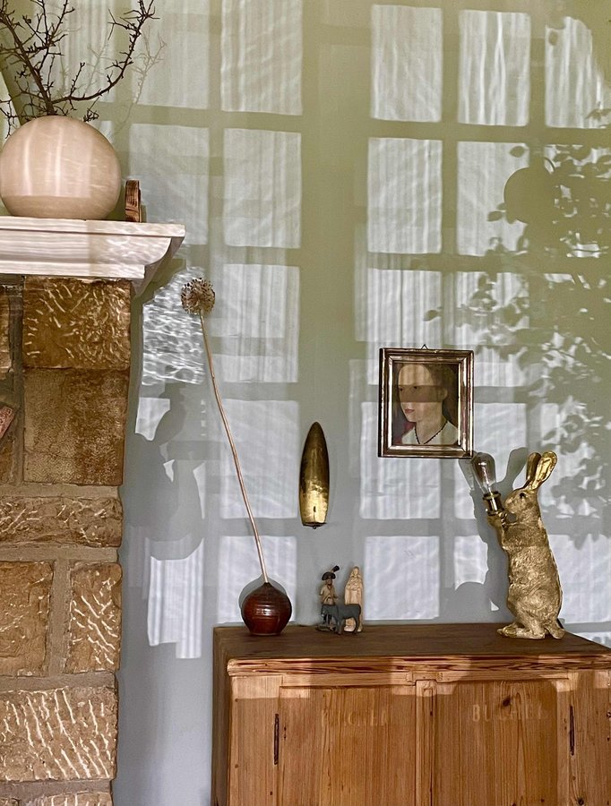 Landhaus, Sonnenlicht, Hasenlampe, Sprossenfenster, Kamin