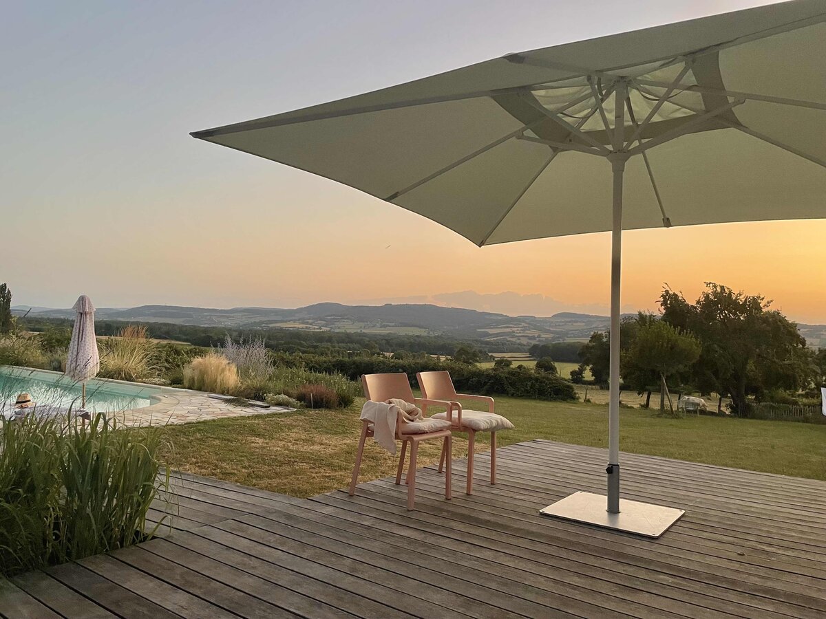 Landhaus, Abend, Holzterrasse, Nachderhitze, Sonnenuntergang