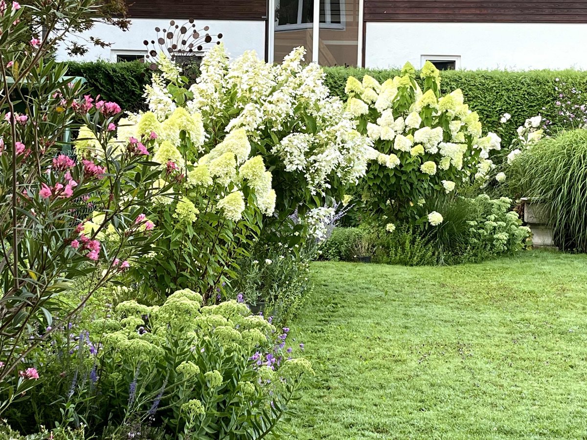 Meinen vielen Rispenhortensien macht die Hitze nichts aus. Nur die Butterfly, zweite von vorne, lässt dann gelegentlich ermattet die Flügel hängen.