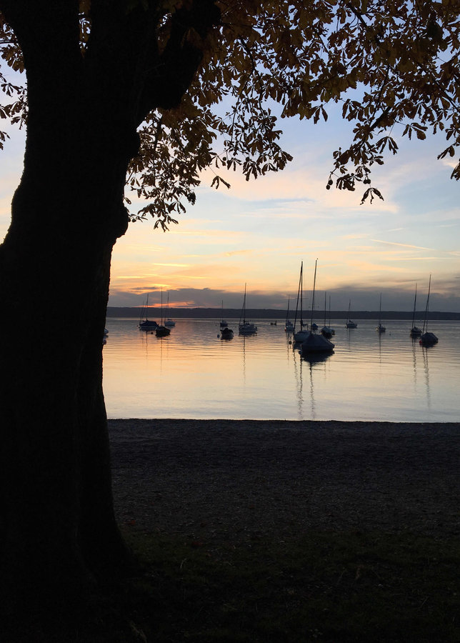 See, Boote, Strand, Farbenspiel, Auszeit, Abendhimmel, licht