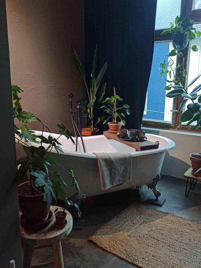 Badezimmer, Badewanne, Dschungelbad, Altbau, Betonboden