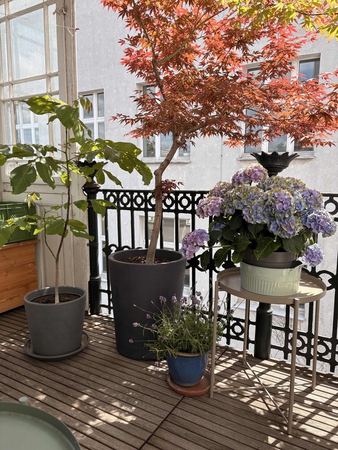 Balkon, Altbau, Ahorn, Hortensie, Lavendel, Walnussbaum, Ikea