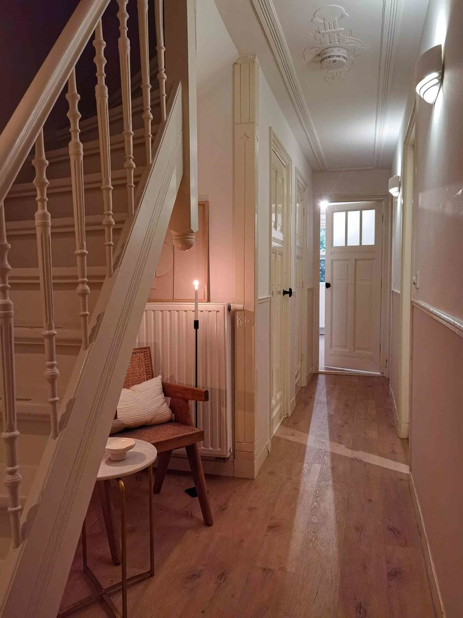 Altbau, Altbauliebe, Altbauwohnung, Wohnung, Flur, Hygge, Cozy, Gemütlich, Parkett, Tür, Kerzen, Stuck, Treppe, Nordic