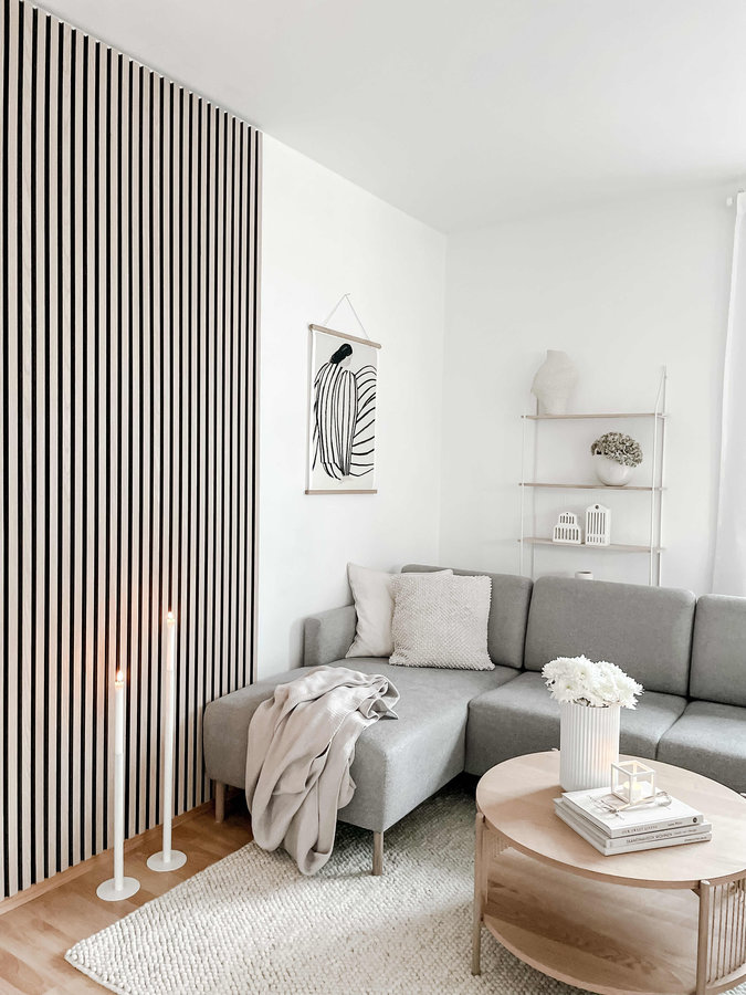 Wohnzimer, Wohnzimmer aktuell, Holzwand, skandinaivisches design, Scandi