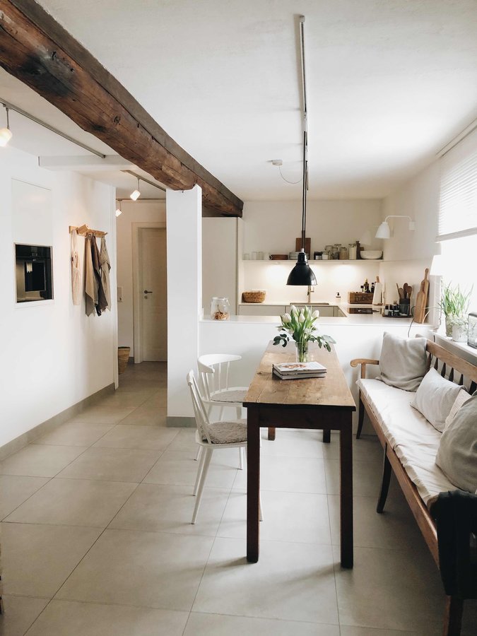 Küche, Altbau, Weiße Küche, Vintage, Holzbank, HAY, Tulpen, fachwerkhaus