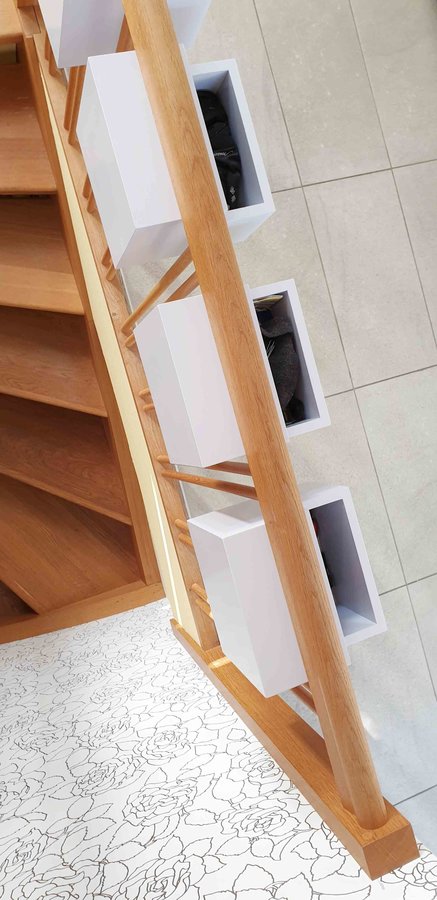 ORDNUNG - Ein Flur, 4 Personen, 4 Holzkästen. So wird bei uns der ganze Kleinkram im Flur aufbewahrt. Die Idee hatte ich vor 15 Jahren. Der Treppenbauer fand die Idee seltsam aber interessant. Gebaut, selbst gestrichen, eingebaut. Hat sich absolut bewährt. Wir lieben unsere Kramkisten. Schlüssel, Handschuhe, Mütze, Portemonnaie, Post. Jeder hat seinen Kasten. Fertig.
