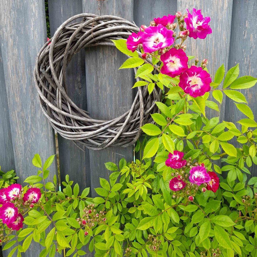 Meine Kletterrose zeigt ihre ersten Blüten.