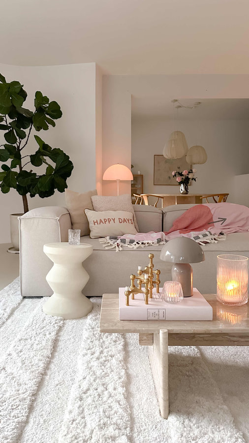Wohn Esszimmer, wohn essbereich, Wohnaccessoires, Wohnbereich, Wohnzimer, Beige, Rosa, Couch, Sofa, Deko im Wohnzimmer, Deko, Dekoideen