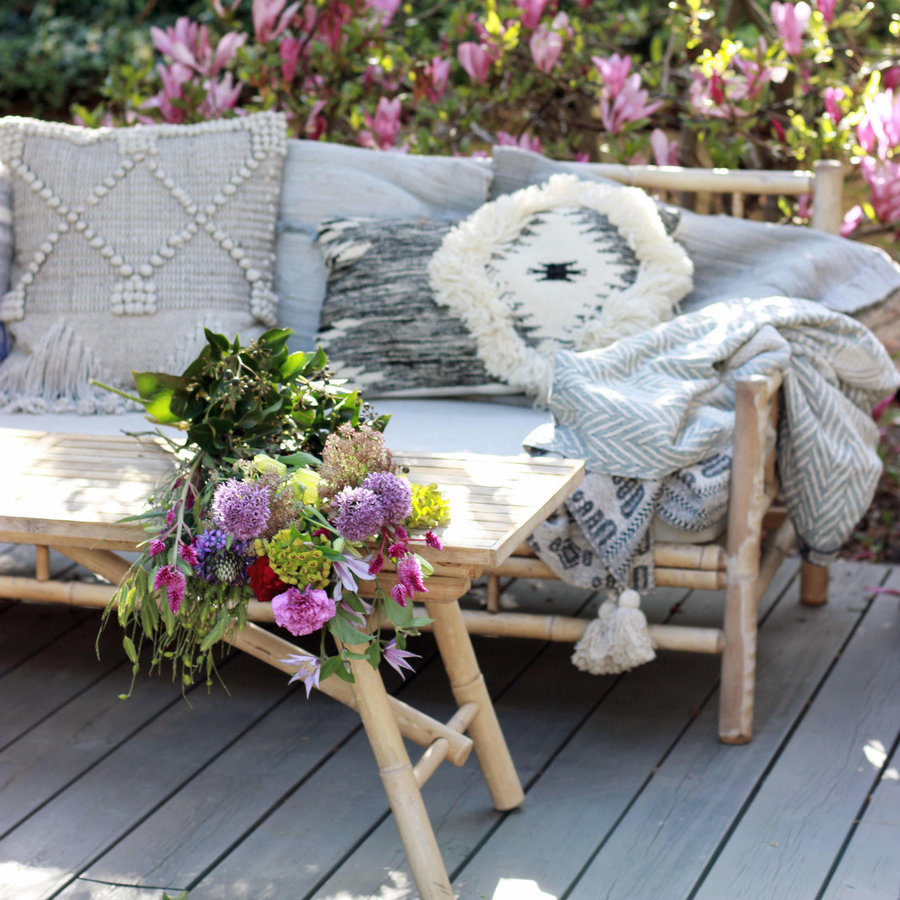 Freshflowers, Bambusmöbel, Decke, Plaid, Bloomingville, TineK, Terrasse, Blumen, Frühling